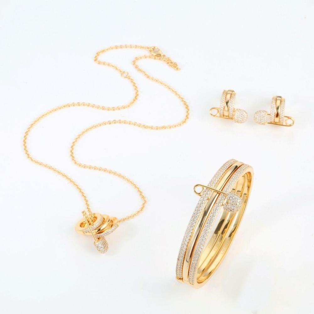 سيت اكسسوار عصري قلادة وسوار وحلق بلون ذهبي مرصع