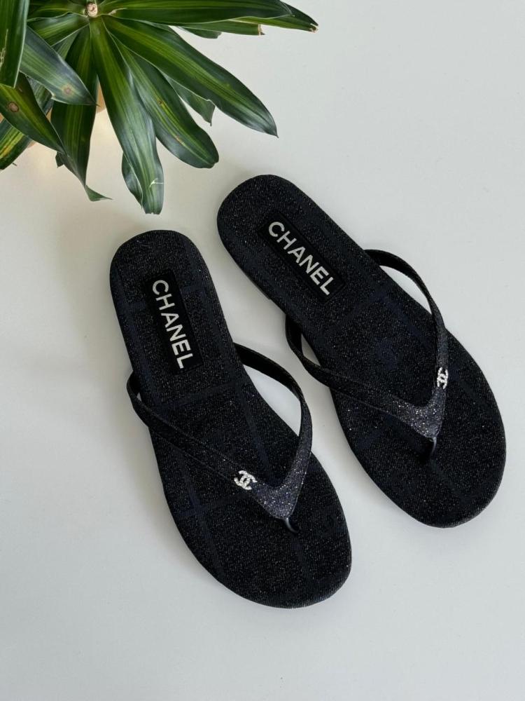صندل فلات نسائي شانيل اوبن لون اسود مع جليتر