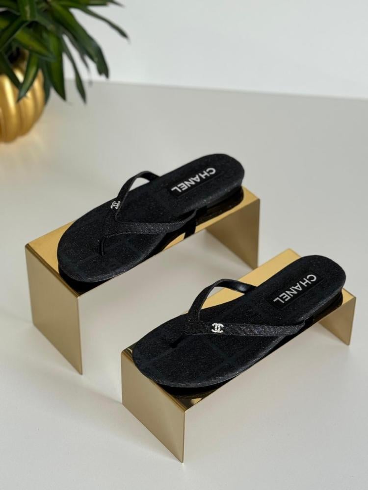 صندل فلات نسائي شانيل اوبن لون أسود مع جليتر