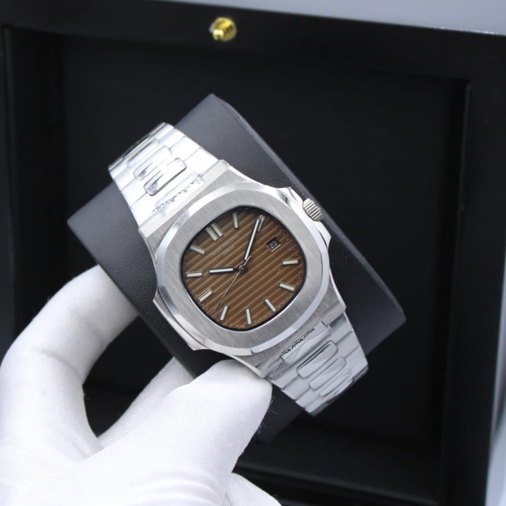 ساعة راقية للرجال باتيك فيليب نوتيلوس لون فضي وبني
