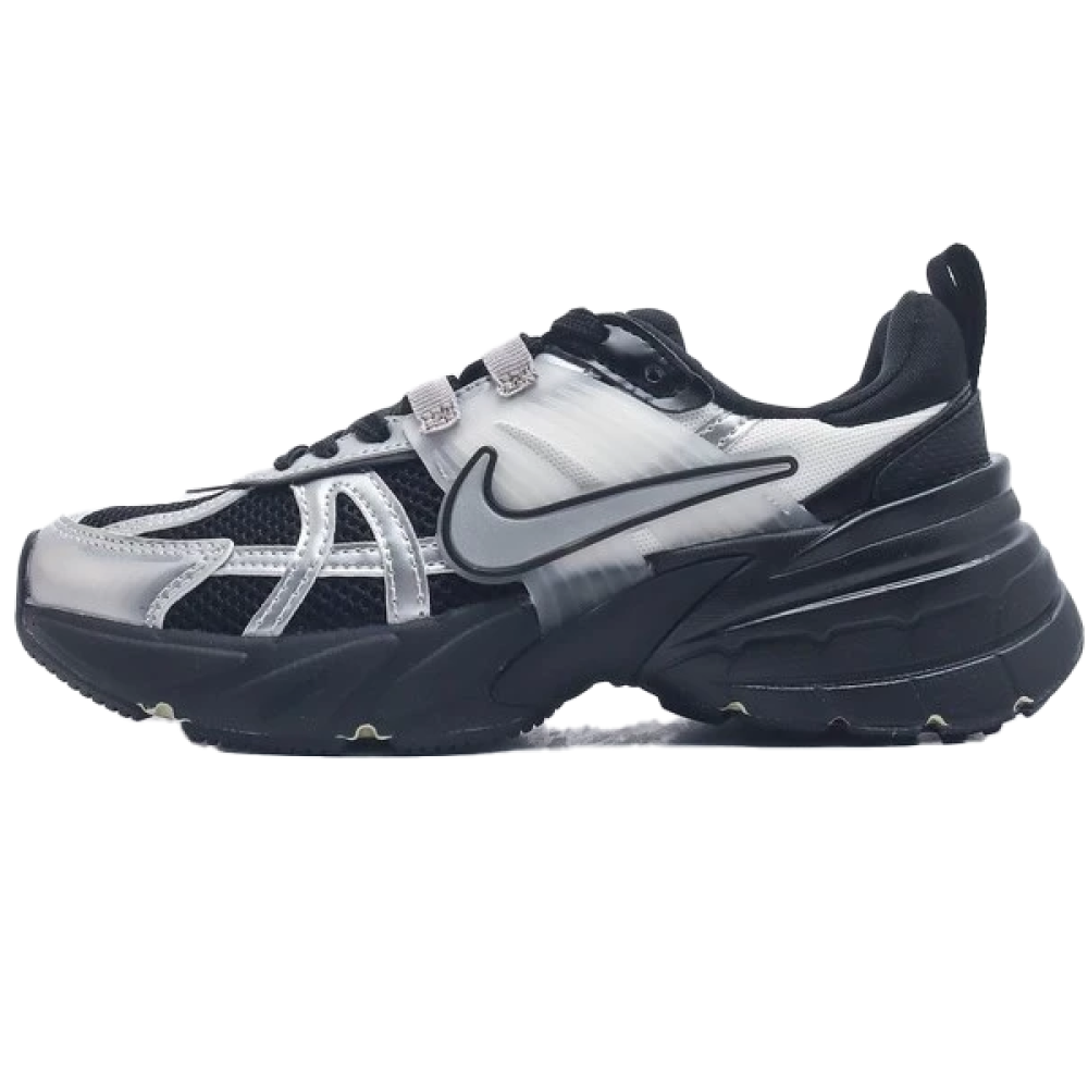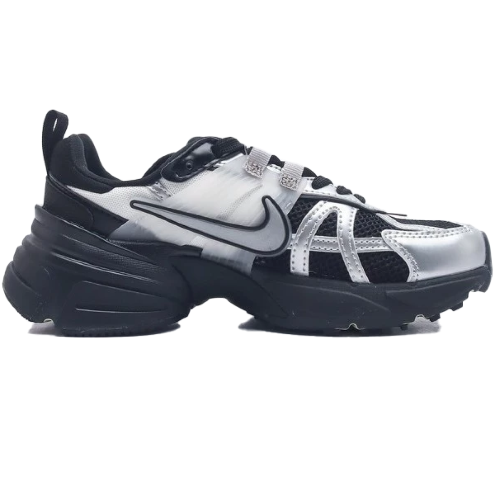 استمتع بالراحة والأناقة مع سنيكرز نايكي v2K الفضي والأسود، المصمم للجنسين ليمنحك تجربة رياضية فريدة.