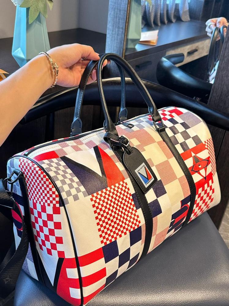 شنطة سفر لويس فيتون متوسطة الحجم أسود وأحمر