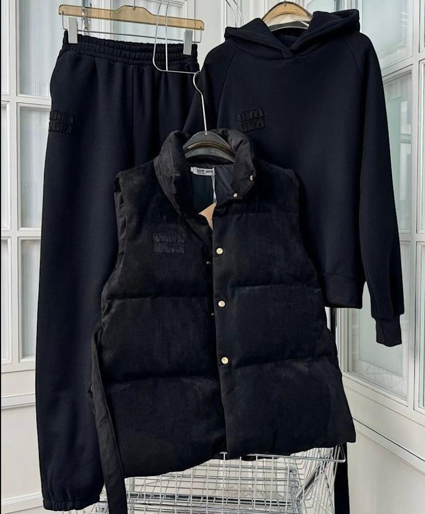 طقم لويفي النسائي ثلاث قطع هو الخيار المثالي لمن تبحث عن مزيج من الراحة والأناقة بأسلوب كاجوال. تصميمه البسيط والأنيق مع اللون الأسود يضمن لك إطلالة مريحة وعصرية في كل مرة.