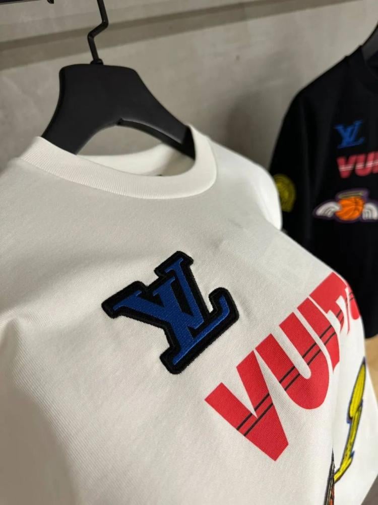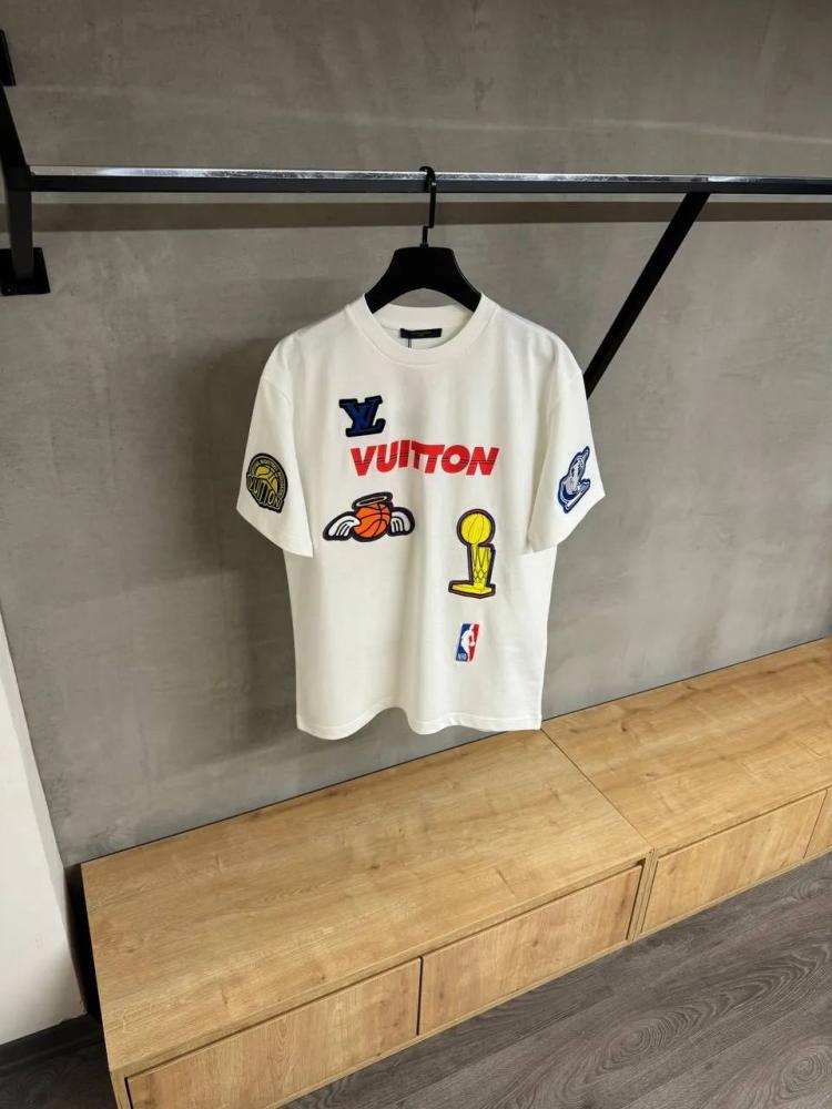 تي شيرت رجالي من لويس فيتون × NBA بلون أبيض بنقشة شبابية حيوية تجمع بين الفخامة وروح الرياضة.