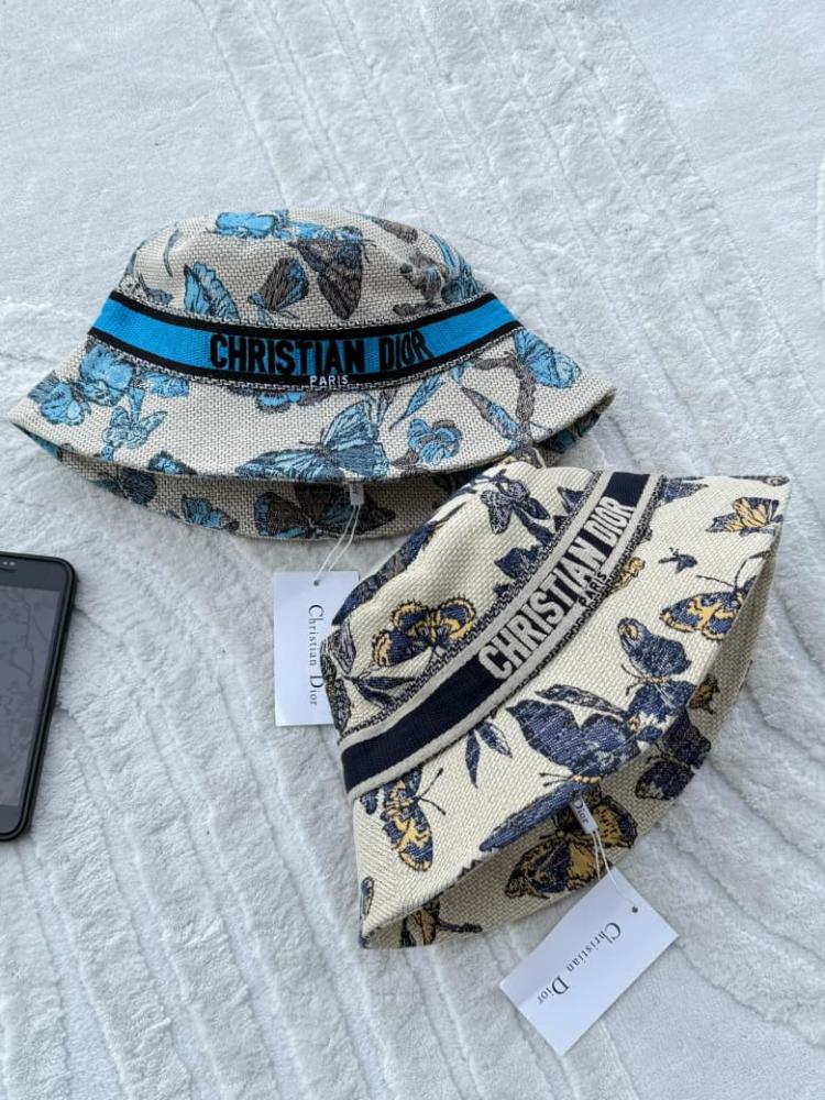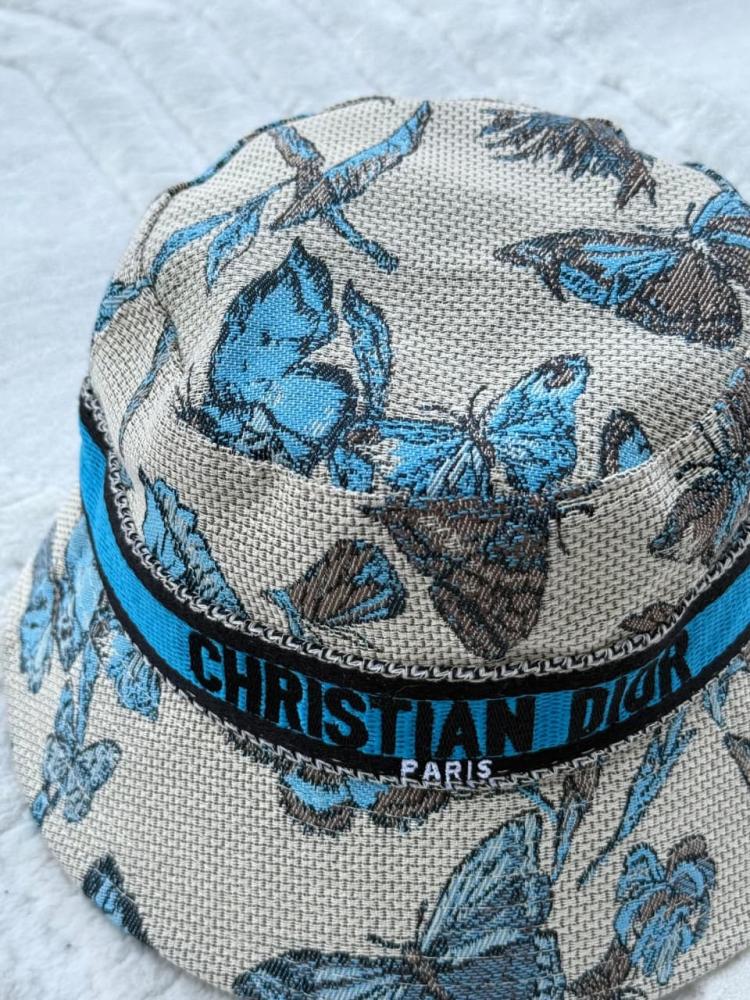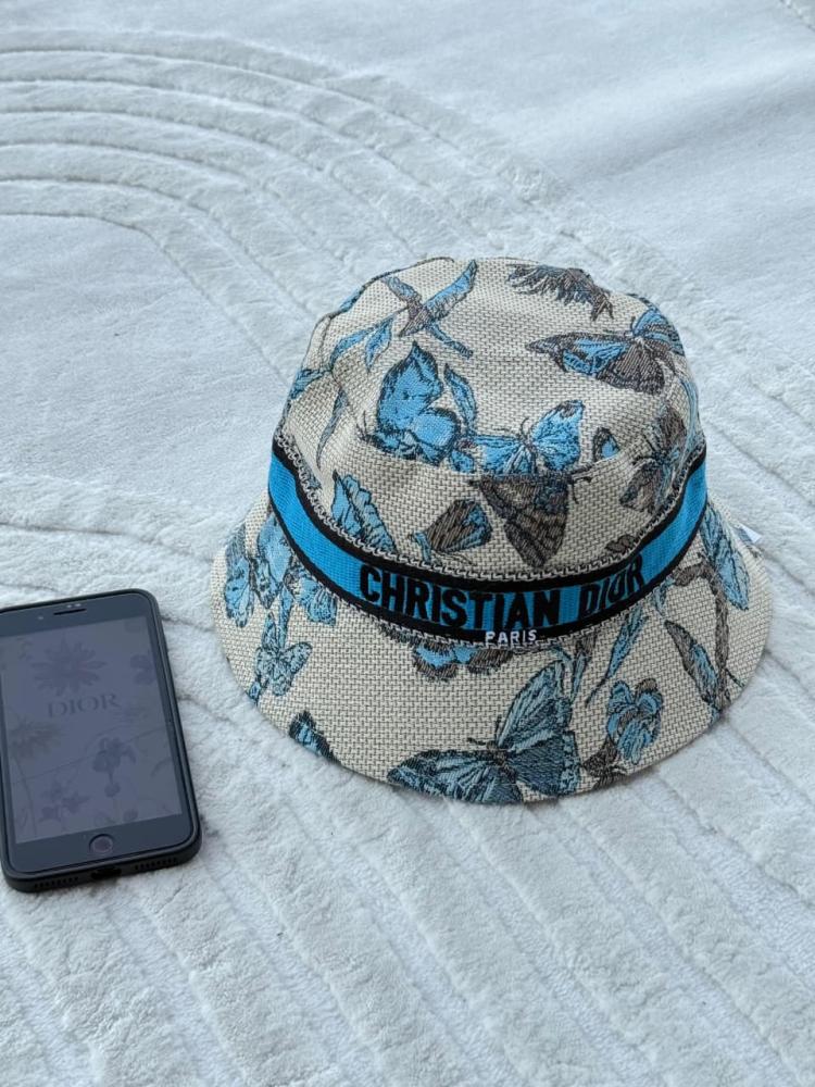 قبعة نسائية ديور باكيت بطبعة فراشات زرقاء