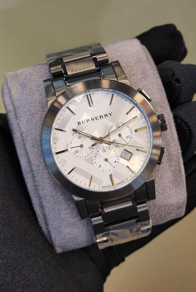 ساعة معدنية بربري للرجال ذا سيتي بلون أسود مينا أبيض