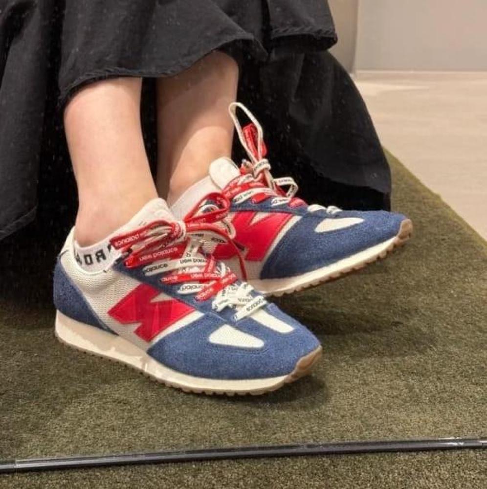 سنيكر نسائي نيو بالانس 471 لون كحلي وأحمر بأربطة ملونة