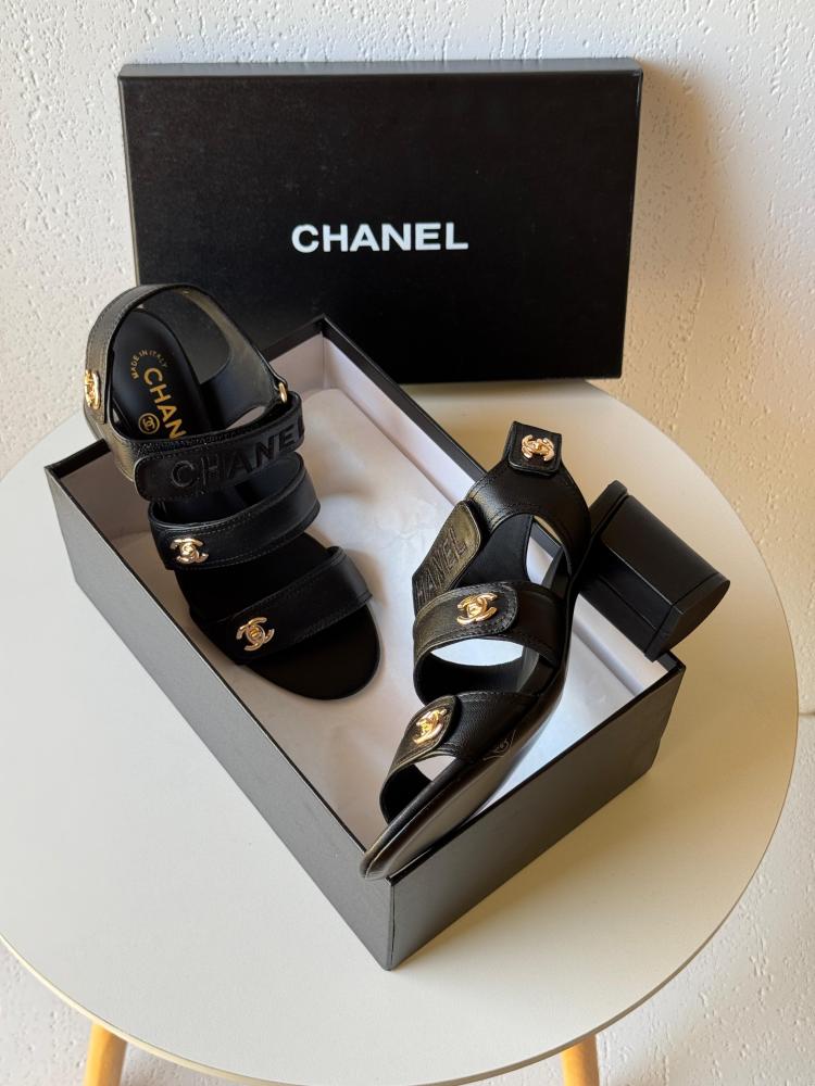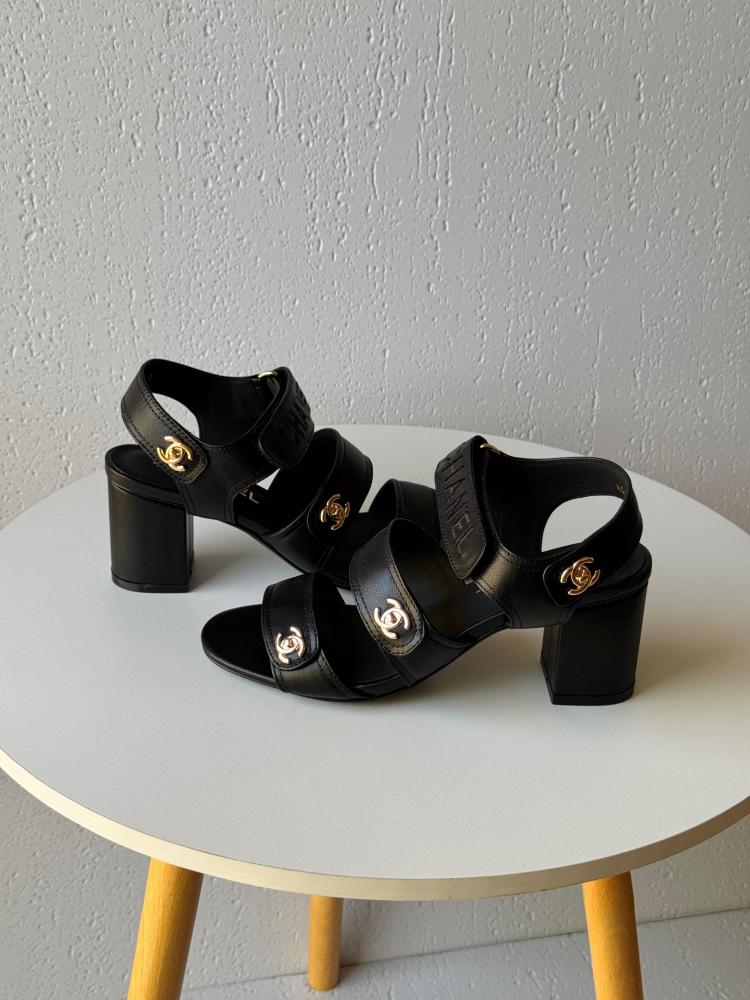 تألّقي بفخامة لا تُقاوم مع صندل شانيل الأسود المصمم بذوق راقٍ يجمع بين الأناقة العصرية ورقي التفاصيل. لمسة الشعارات الذهبية تضيف فخامة كلاسيكية تكمّل أي إطلالة سواء نهارية أو مسائية.