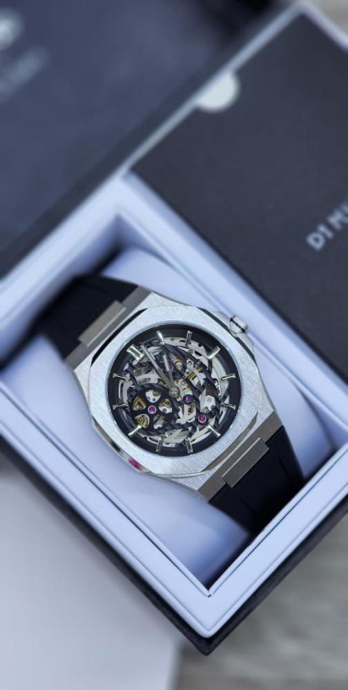 ساعه D1 ميلانو سكيليتون لون فضي واسود أنيقة