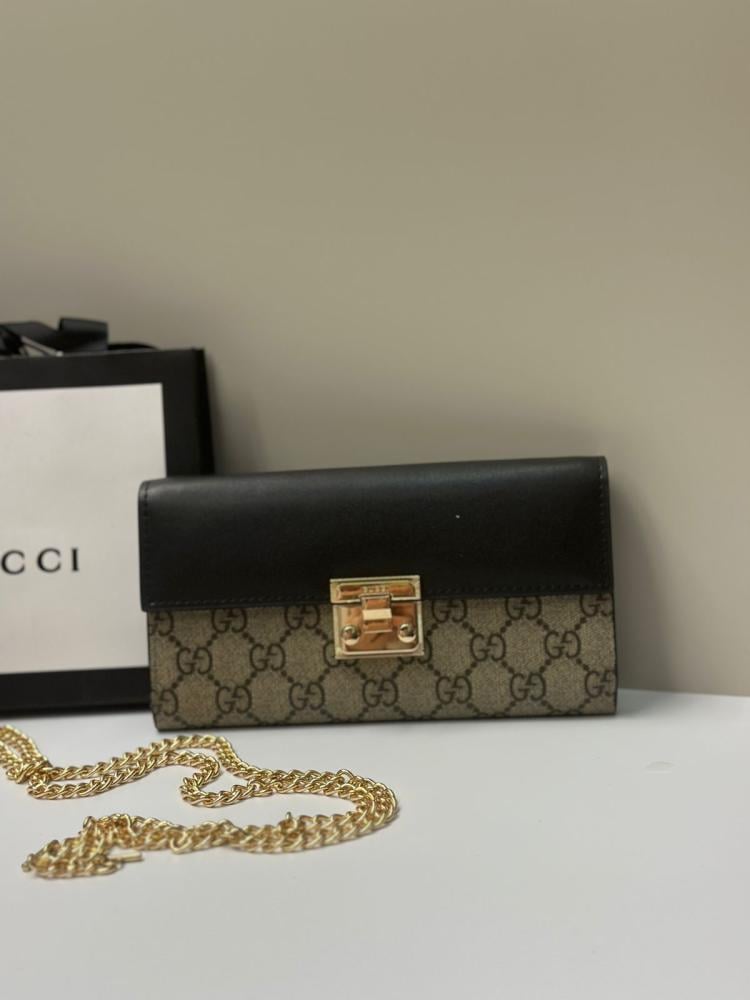 محفظة نسائية طويلة جوتشي بادلوك GG بسلسلة أسود وبني