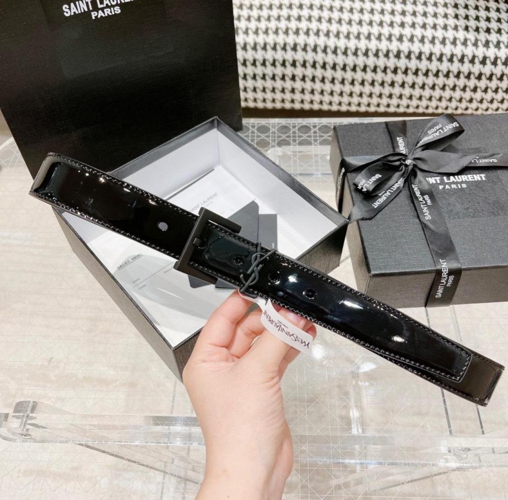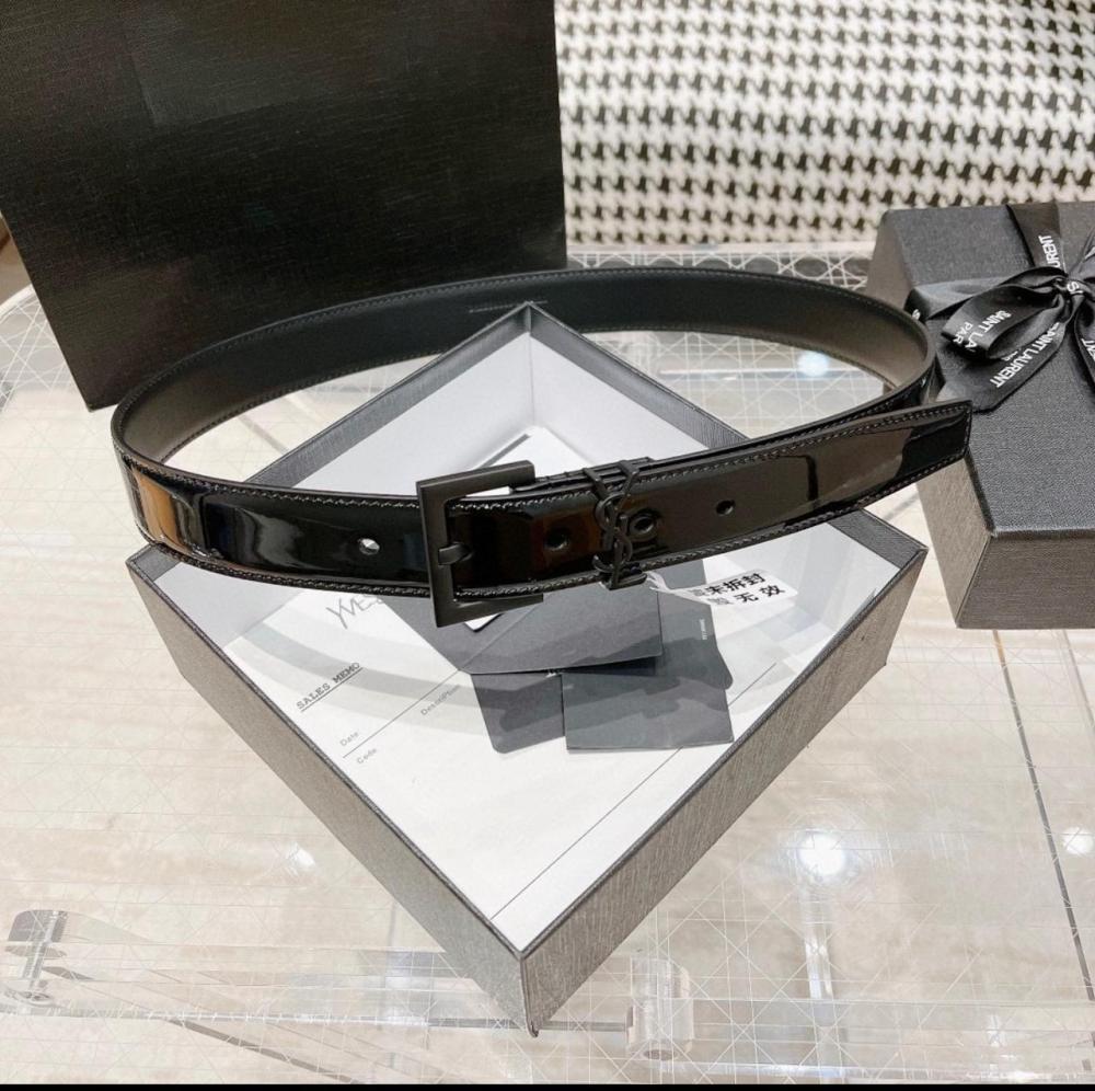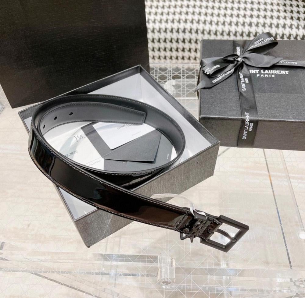 حزام رجالي سان لوران 3سم أسود لامع بمشبك أسود
