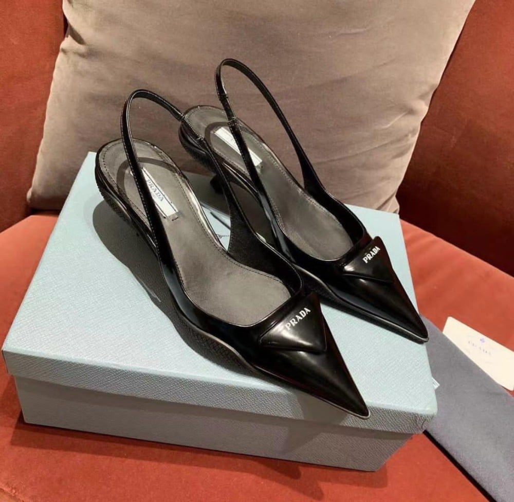 صندل نسائي من برادا تصميم فاخر لون أسود راقي ولامع