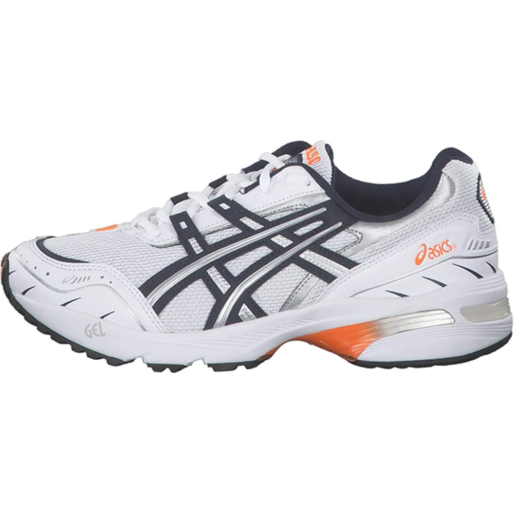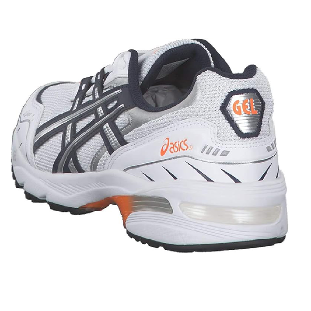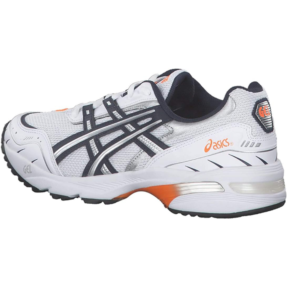 سنيكرز ASICS Gel-Venture 6 للجنسين – باللون الأبيض مع لمسات فضية وبرتقالية