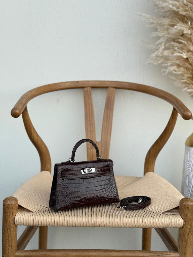 شنطة يد ايرمز ميني كيلي 19 سم جلد كروكو لون بني