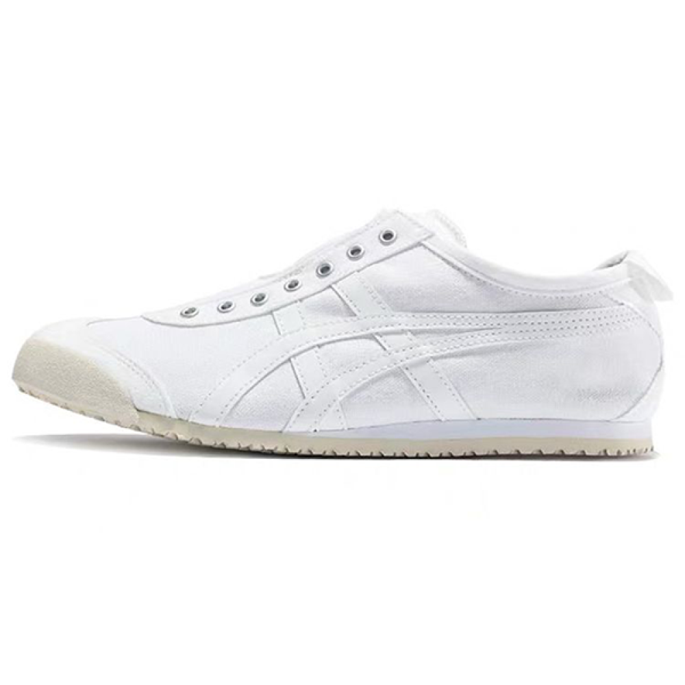 استمتع بإطلالة رياضية كلاسيكية مع حذاء أونيتسوكا تايغر مكسيكو 66 الأبيض بتصميم منخفض وسليب أون للجنسين، حيث يتيح هذا الحذاء مزيجًا مثاليًا من الراحة والأناقة.