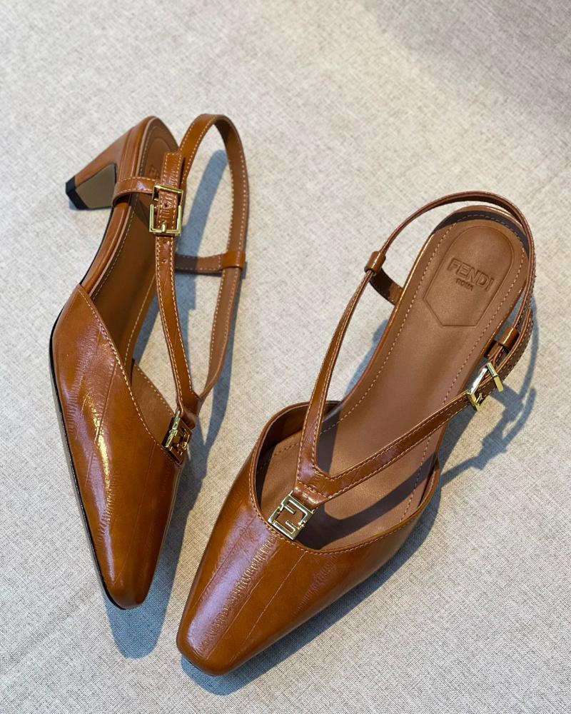 صندل نسائي جلد فاخر من فيندي بلون عسلي مع حزام