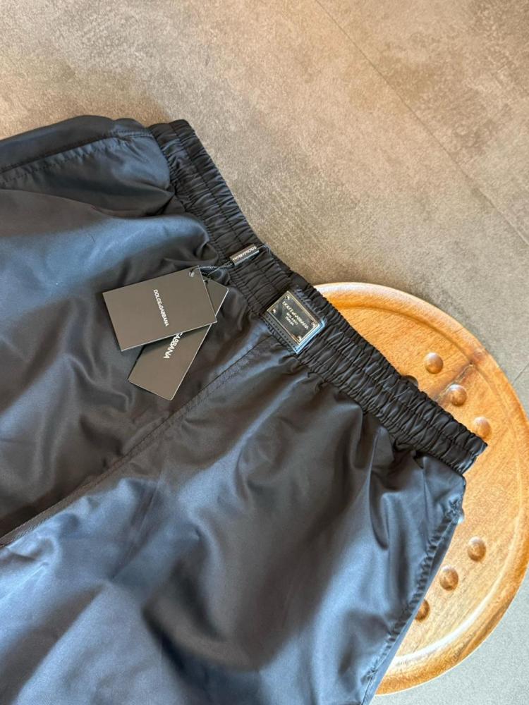 بكيني رجالي دولتشي أند جابانا بلون أسود وتصميم شورت قصير، يجمع بين الفخامة والأداء العملي لأوقات السباحة والاسترخاء على الشاطئ.