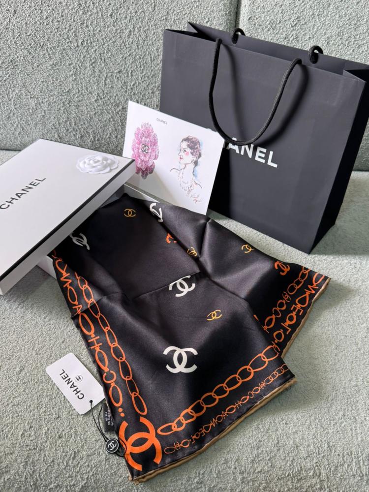 سكارف شانيل أسود مزركش بني بطبعة شعار الماركة