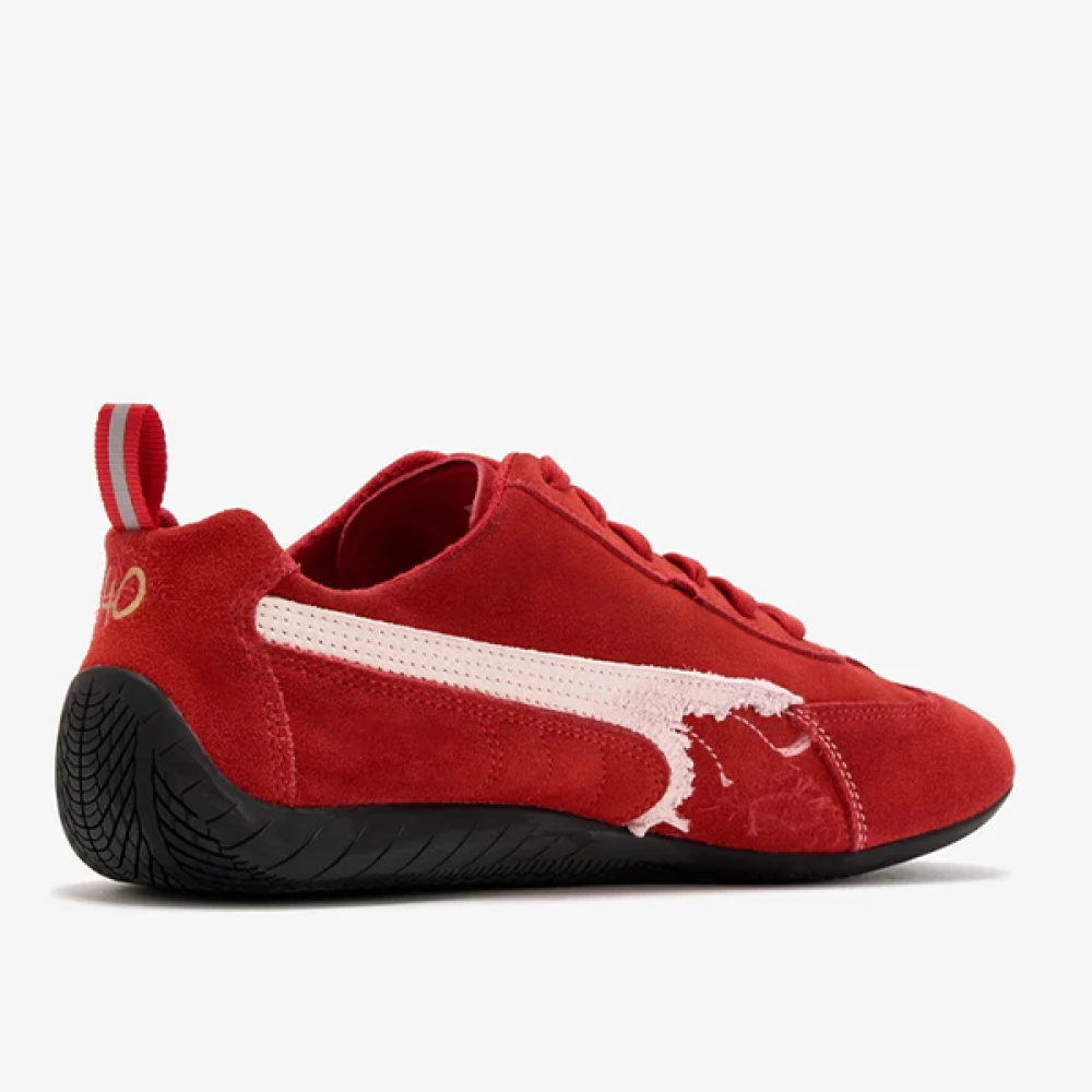 تميّز بإطلالة جريئة مع بوما سنيكر سبيدكات × بالنسياغا بلون أحمر مخملي، حيث يجمع التصميم بين الفخامة العصرية والأداء الرياضي المريح للجنسين.