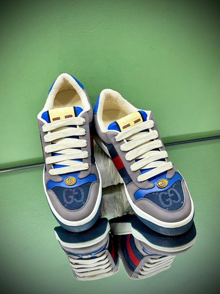 شوز قوتشي سكرينر القماشي بنقش GG كحلي ورمادي – توازن مثالي بين الحرفية الإيطالية والأناقة المعاصرة.