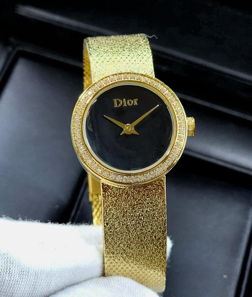 ساعة فاخرة ديور لا ديه دو ديور ساتين بلون ذهبي قرص أسود