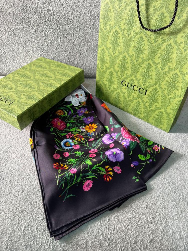 وشاح رقبة نسائي Gucci – أسود فاخر بنقشة زهور ملونة