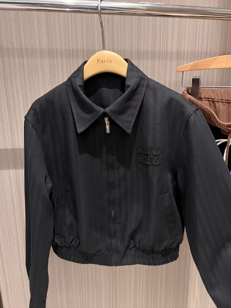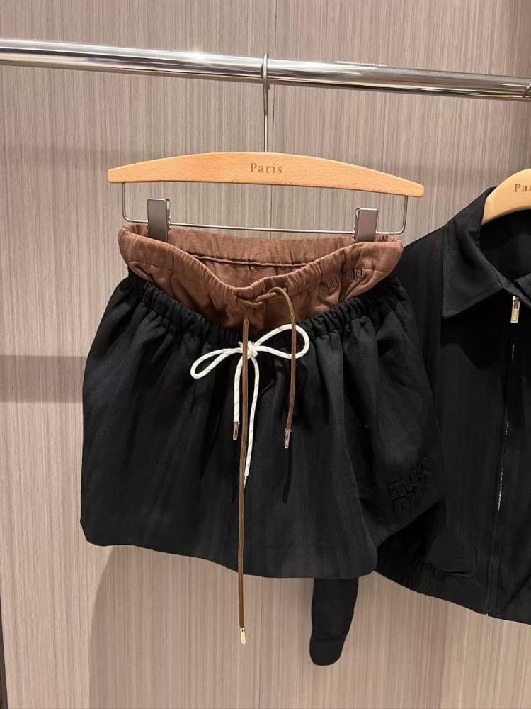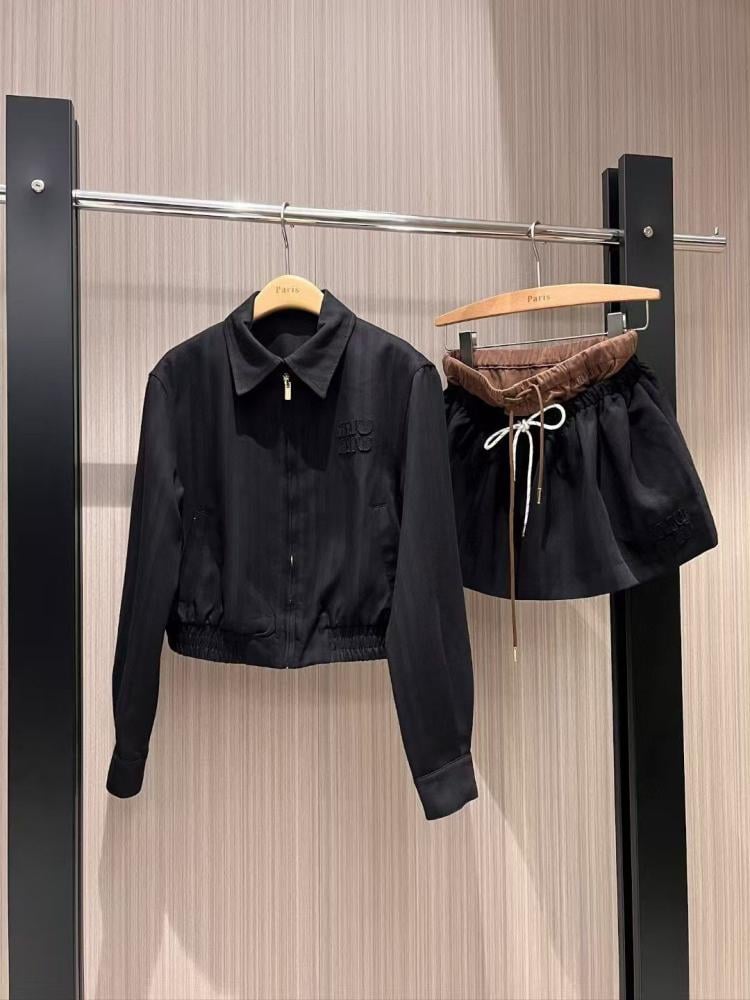 طقم تنورة وجاكيت ميو ميو للنساء مع مطاط لون أسود