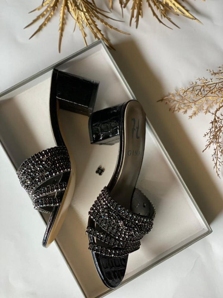 سليبر جينا كعب عالي أسود مرصع