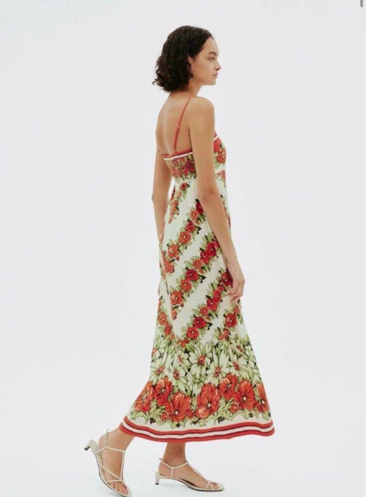 فستان صيفي الميس بطبعة ورود لون أحمر