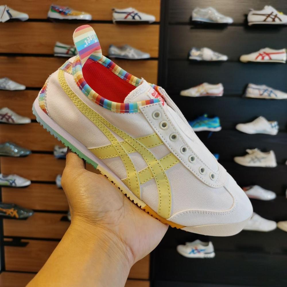 شوز فلات اونيتسوكا تايغر سليب اون أبيض أصفر ملون