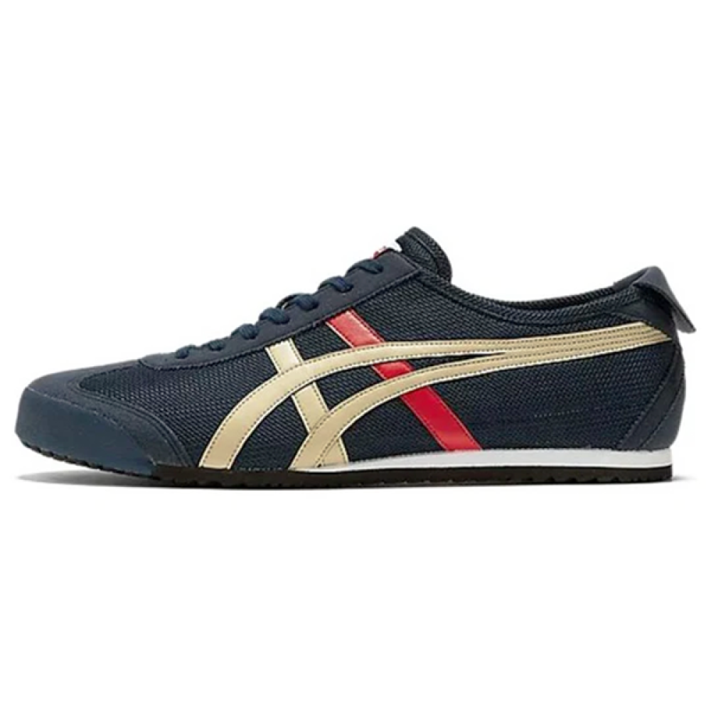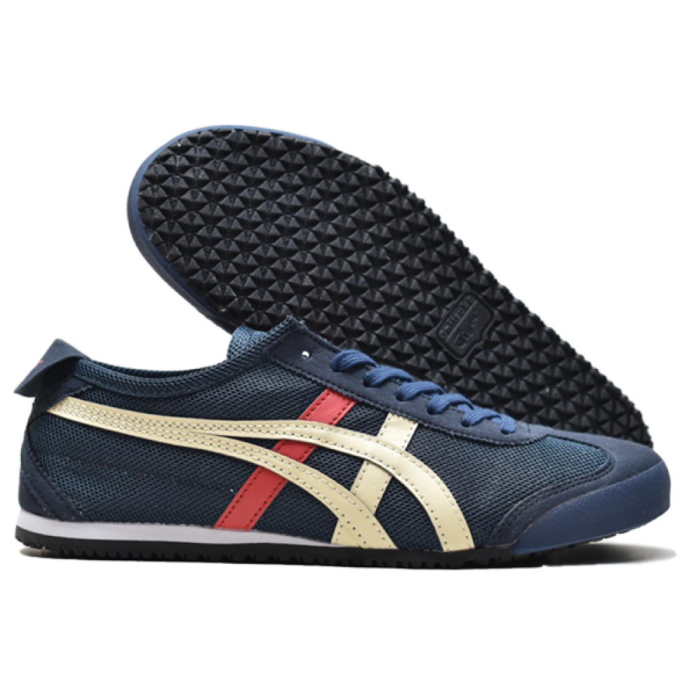 احصل على إطلالة رياضية مع لمسة من الفخامة، سنيكرز اونيتسوكا تايغر سيرانو باللون الكحلي الأنيق مع لمسات ذهبية فاخرة يجمع بين الراحة والتصميم الأنيق. مستوحى من أحذية السباق الكلاسيكية، يقدم هذا الحذاء للجنسين تجربة ارتداء مريحة وأسلوباً عصرياً يناسب مختلف المناسبات.
