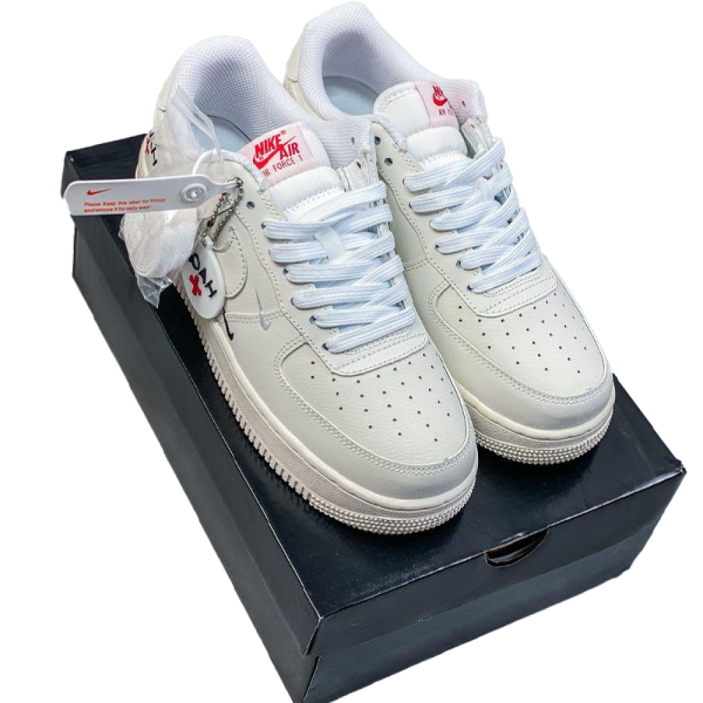 حذاء نايك إير فورس 1 للجنسين - أبيض بتفاصيل حمراء