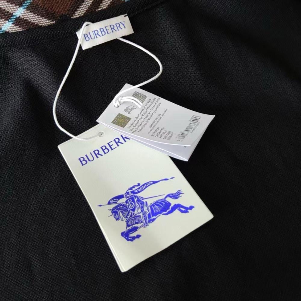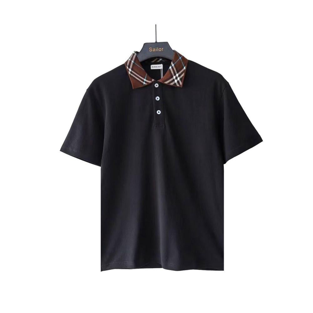 قميص كم قصير رجالي بربري تي شيرت اسود ياقة كاروهات