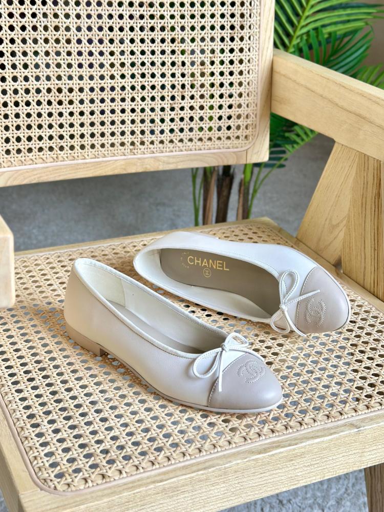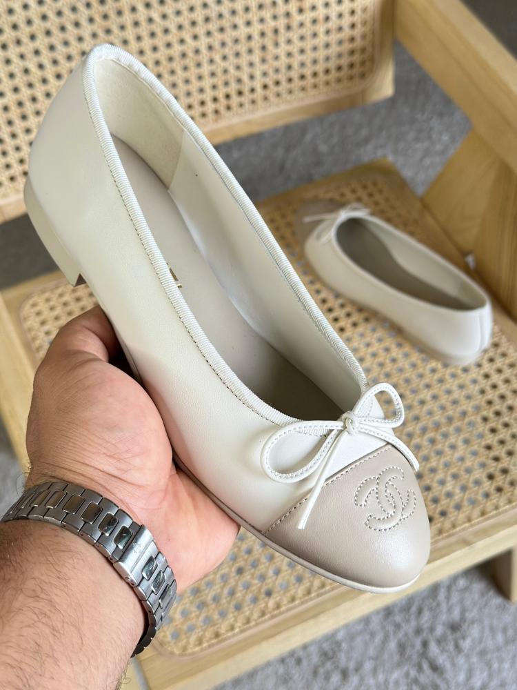 باليرينا شانيل فلات جلد بلون ايفوري ورمادي