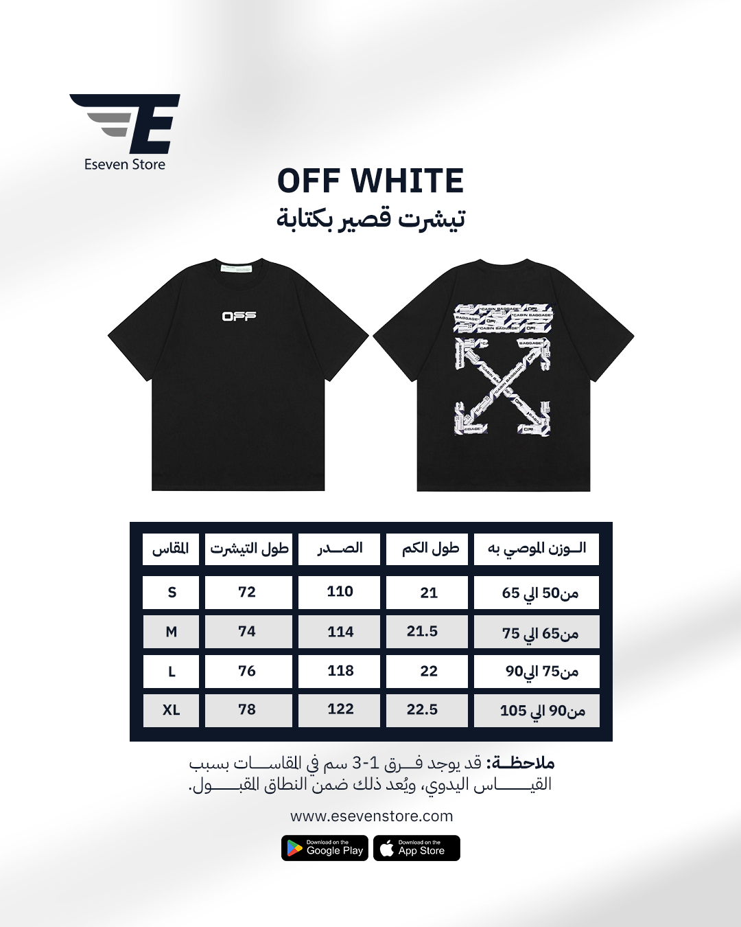 تي شرت اوف وايت بكتابة لون اسود أنيق