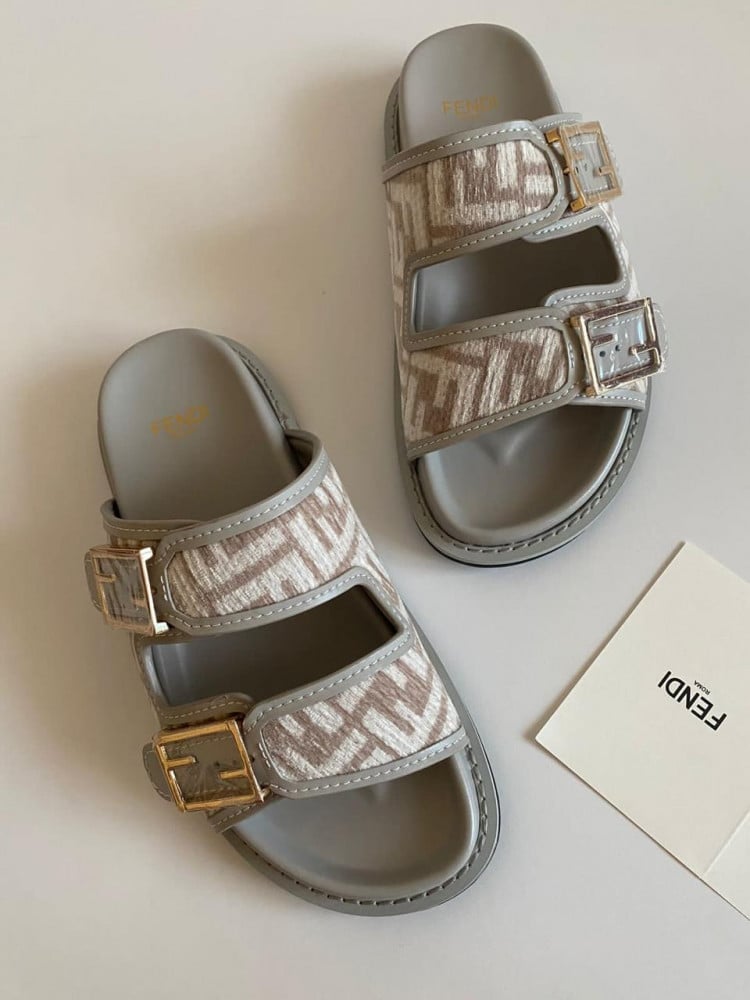 سليبر فندي نسائي رمادي بأحزمة مريحة