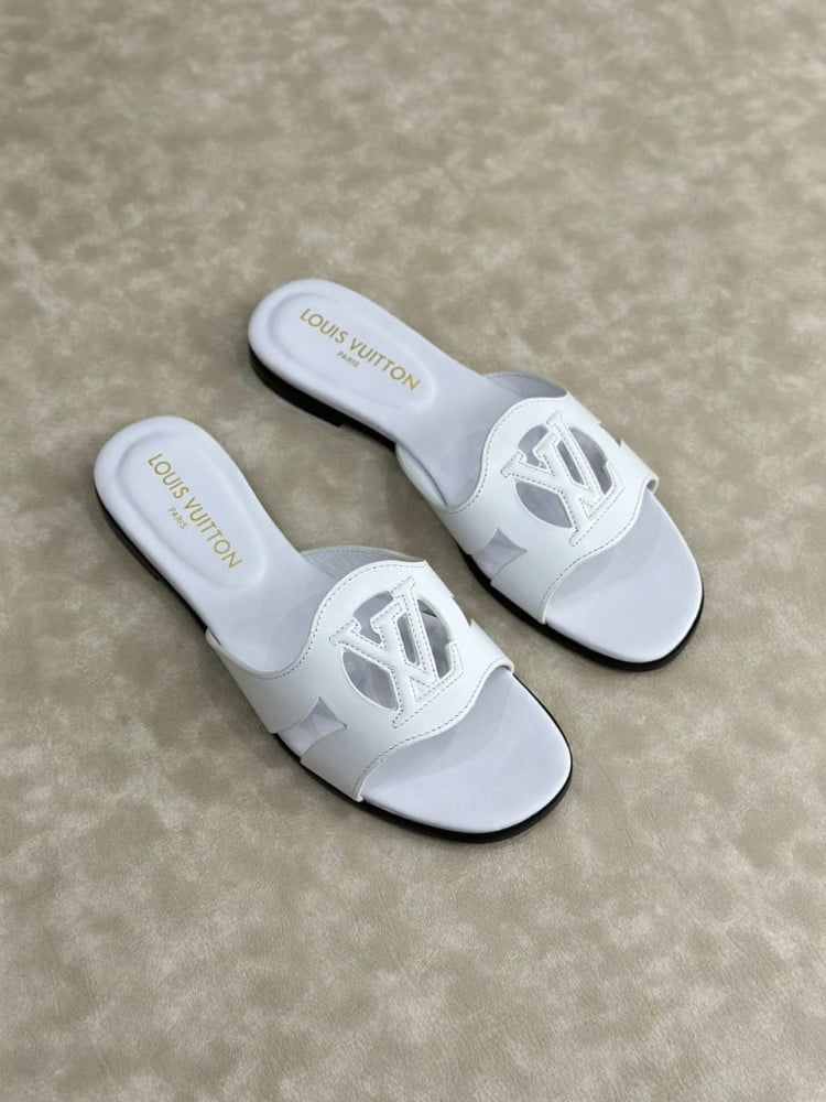 تألقي بأناقة لا مثيل لها مع سليبر لويس فويتون النسائي بلون أبيض الفاخر والتفاصيل الأنيقة.