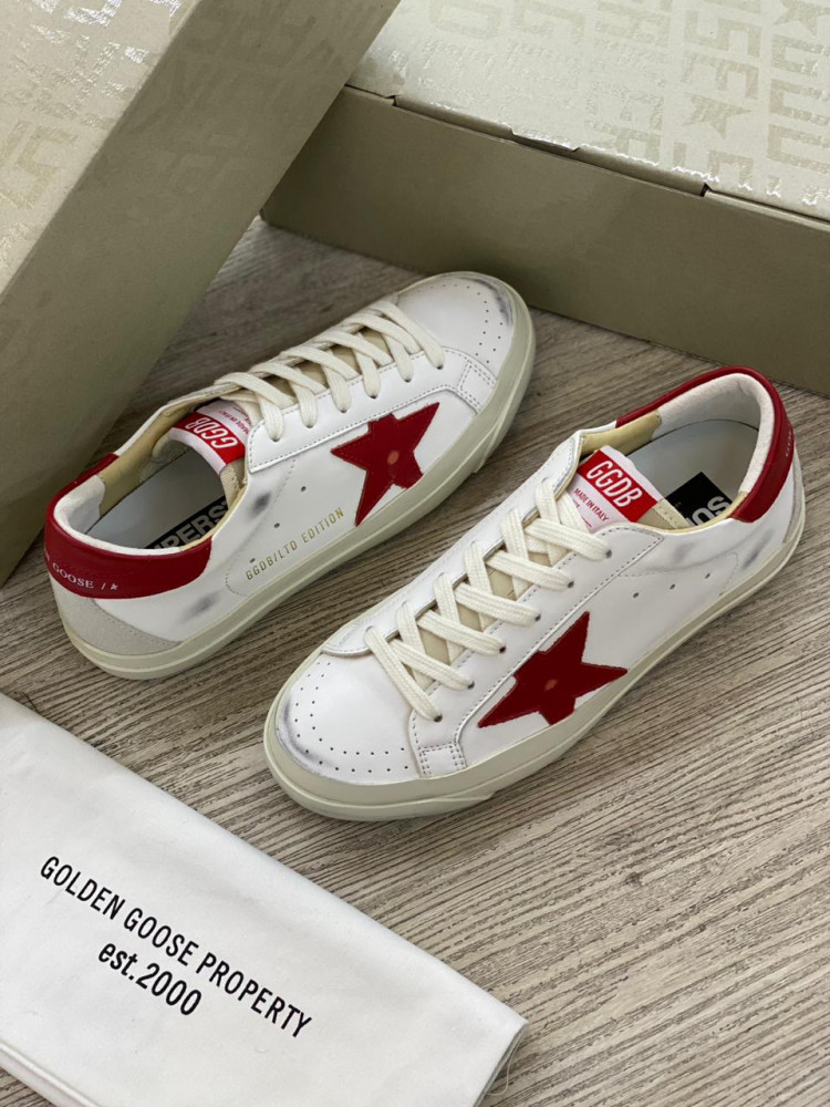 حذاء جولدن غوس ديلوكس براند - ستار ريد، تجربة فريدة في عالم الأحذية تجمع بين الراحة والرقي. تم تصميم هذا الحذاء بجلد فاخر، مع نجمة حمراء تضفي لمسة من الجاذبية والتميز.