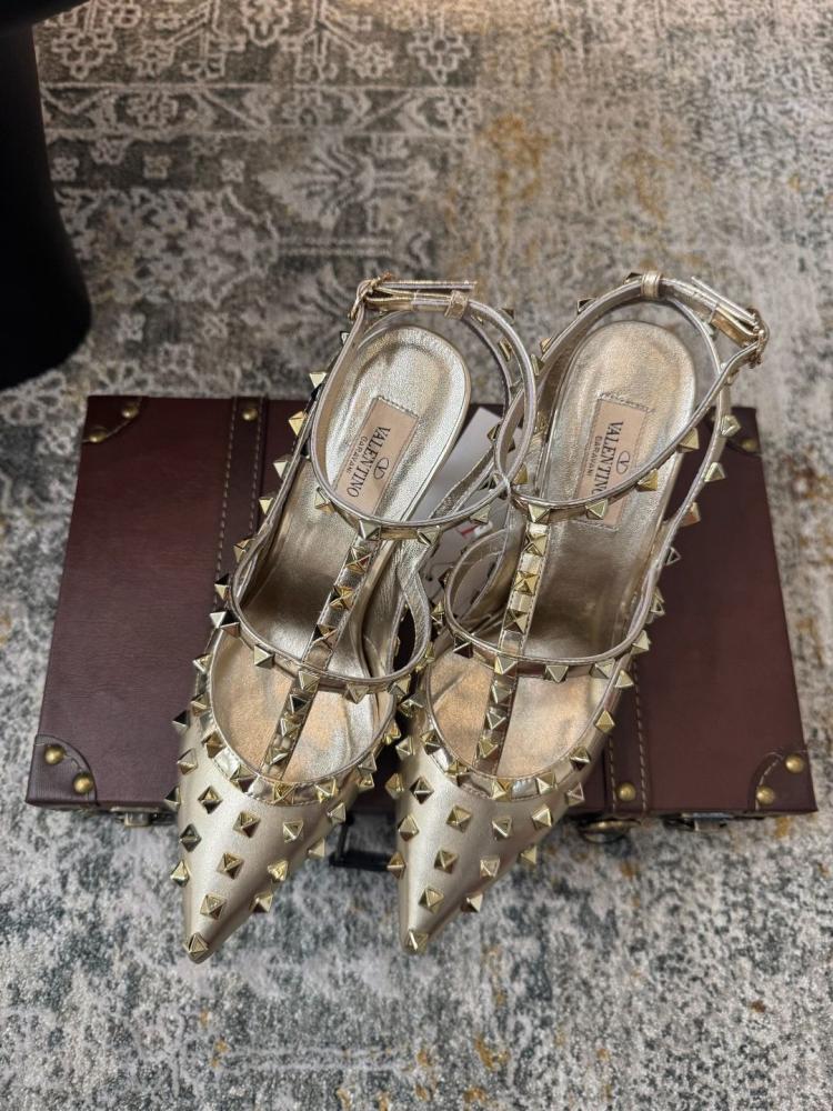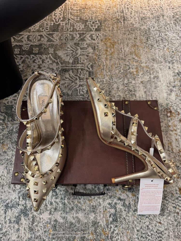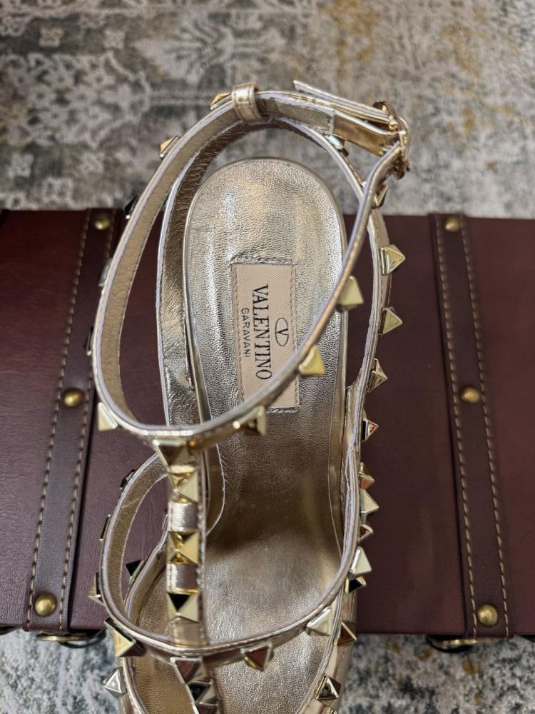 صندل فالانتينو كعب عالي روكستد ذهبي بحزام كاحل