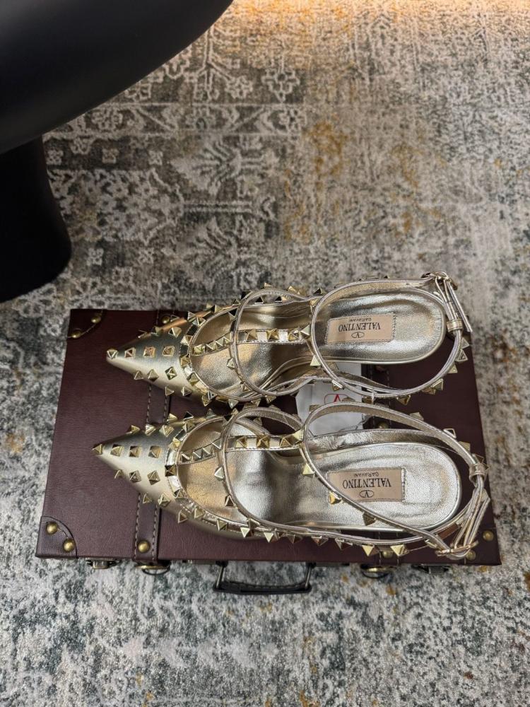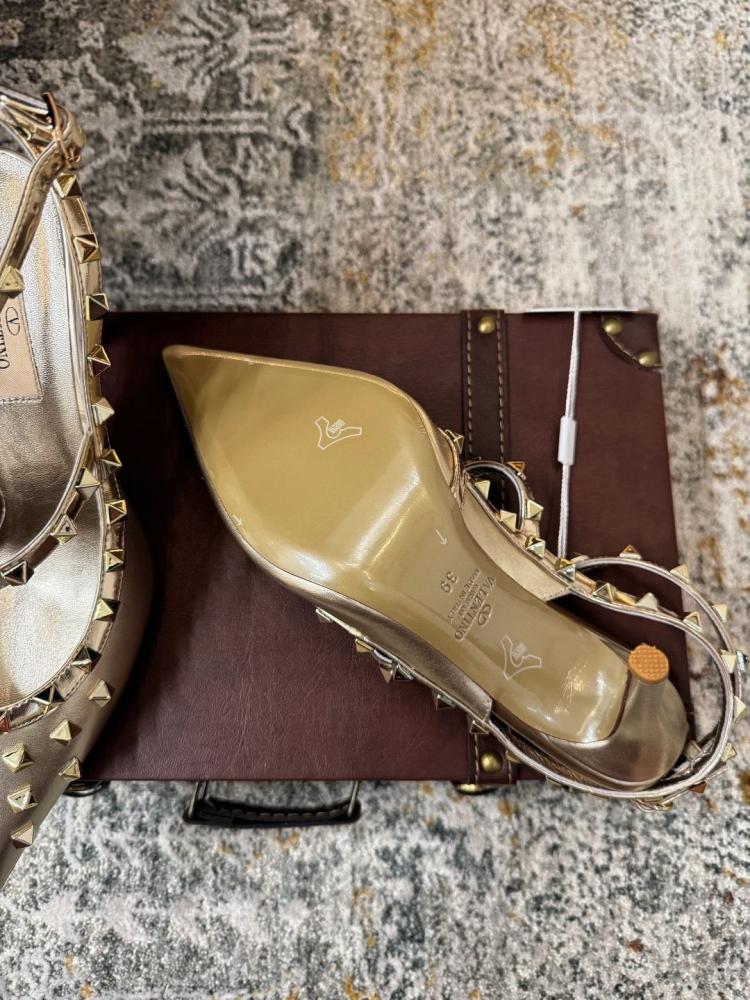صندل فالنتينو روكستد بكعب عالي ولمسة ذهبية فاخرة تعكس جرأة وأناقة فريدة