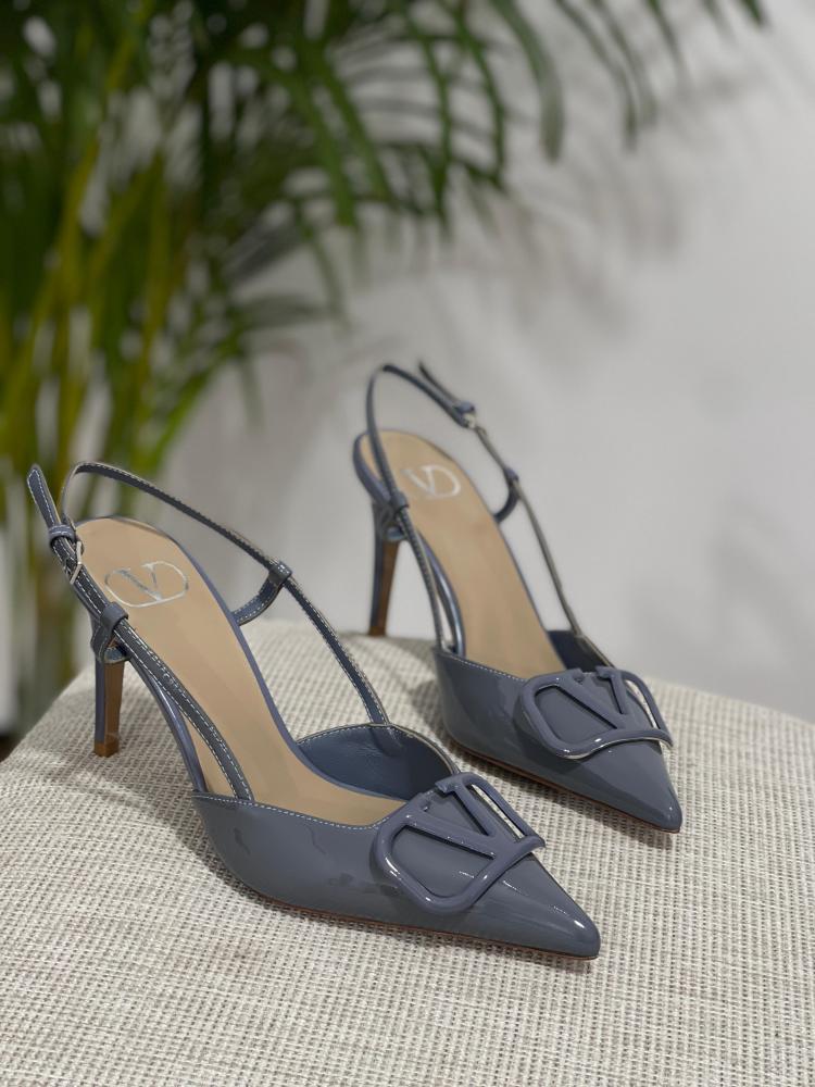 صندل كعب فالانتينو V لوجو80 لامع بحزام خلفي لون رمادي