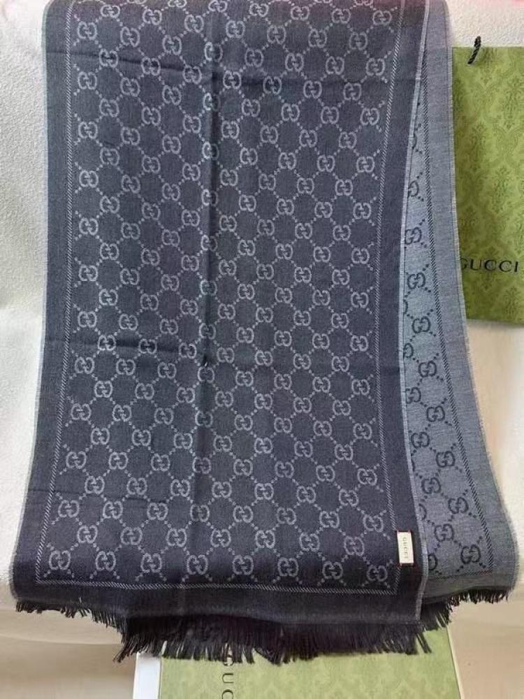 وشاح قوتشي نسائي مزين بطبعة GG بلون رمادي داكن