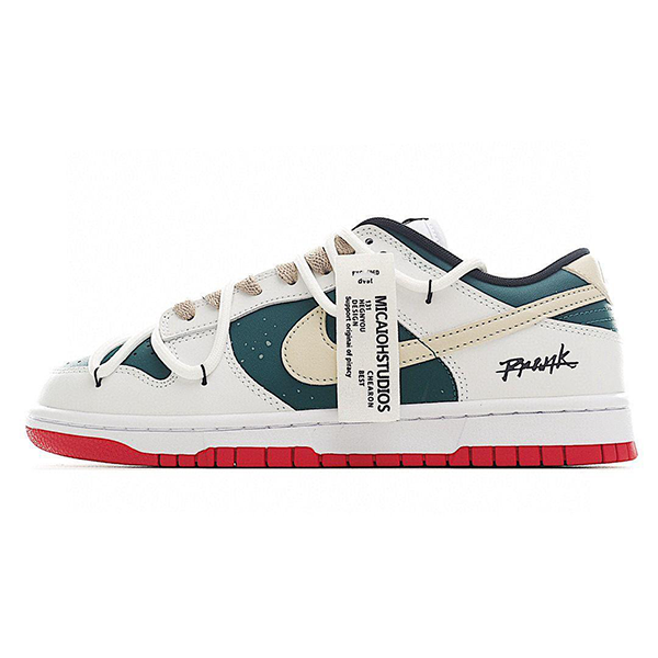 اجعل حذاء دانك لو من نايكي باللون الأبيض مع الأخضر والأحمر جزءًا من إطلالتك اليومية، واستمتع بالمظهر الجذاب والراحة الفائقة في كل خطوة.