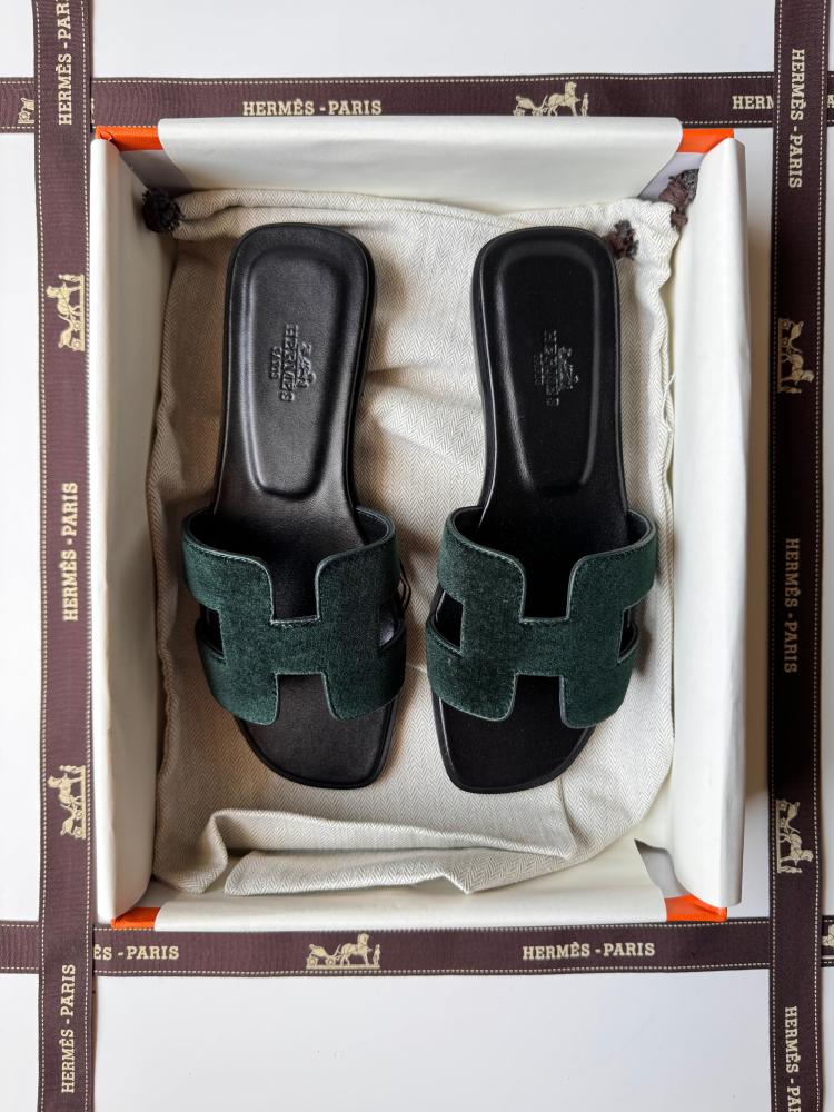 شبشب هيرميس فلات نسائي اوران لون أخضر واسود