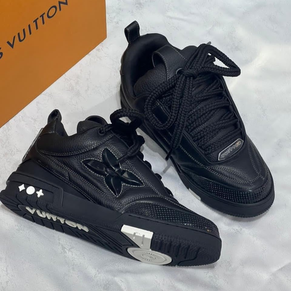 سنيكرز لويس فيتون سكيت بلاك يمثل تجسيدًا للأناقة والأناقة الرياضية في آن واحد. إنه يأتي بتصميم فريد يجمع بين الأسلوب العصري والجودة الرفيعة التي تميز العلامة التجارية لويس فيتون. يتميز هذا الحذاء باللون الأسود الكلاسيكي، مما يجعله قطعة أساسية سهلة التنسيق في أي إطلالة.