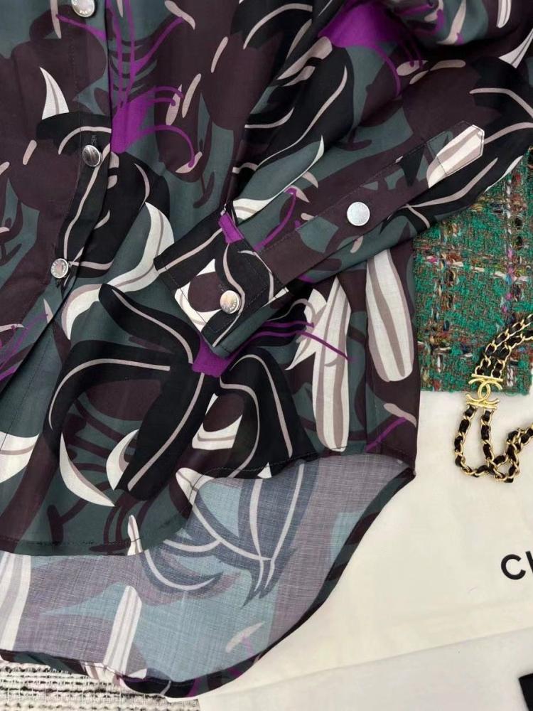 قميص شانيل النسائي – مزخرف بأناقة مع لمسة من الأسود والبنفسجي