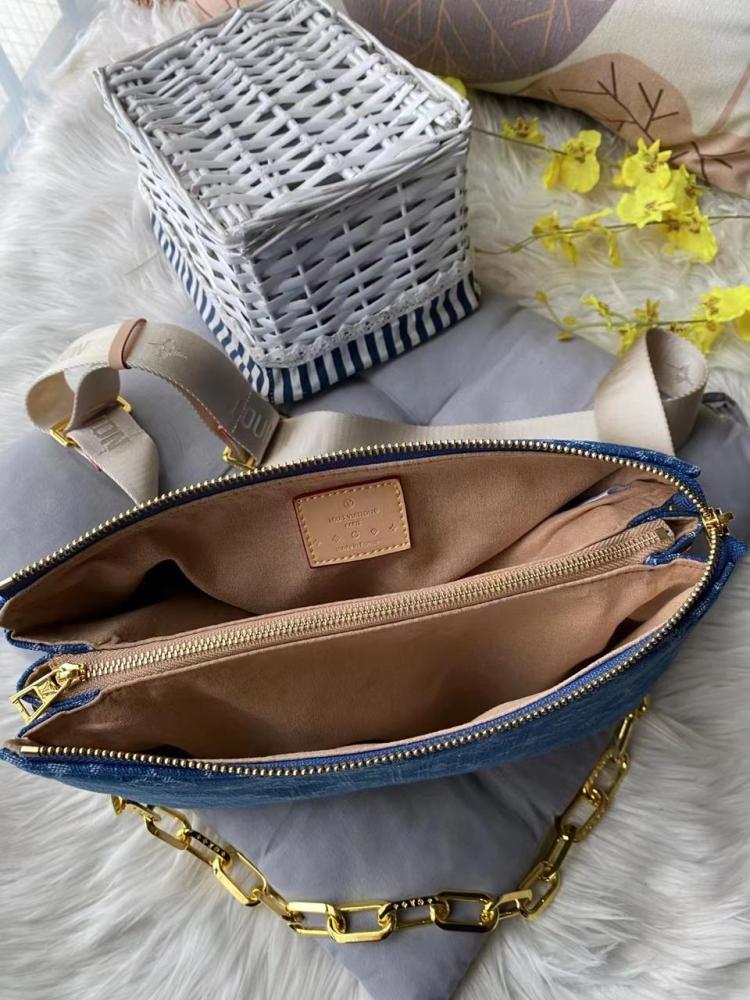 اختاري حقيبة جينز للسيدات كوزين من لويس فيتون لتضفي لمسة من الأناقة الفاخرة على إطلالتك اليومية، واستمتعي بالجمع بين الراحة والرفاهية في تصميم متميز وفريد.