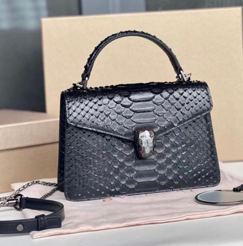 حقيبة بولغاري سبرينتي قلاب بلون أسود تجسّد الفخامة الإيطالية بكل تفاصيلها، من الجلد الفاخر إلى رأس الأفعى الأيقوني الذي يزين الغطاء.