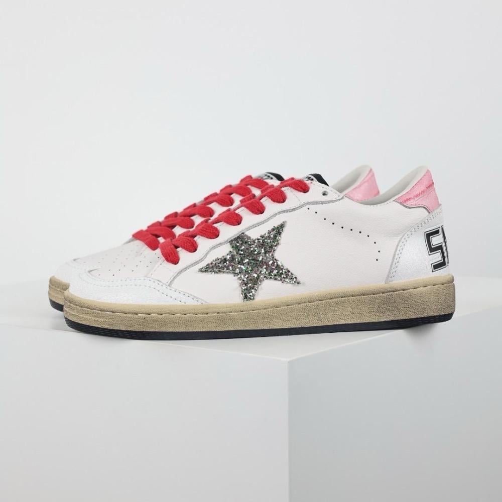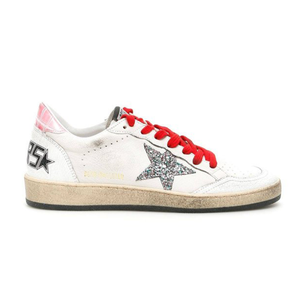 جولدن غوس بول ستار – فلات سنيكر أبيض وأحمر بجليتر فضي