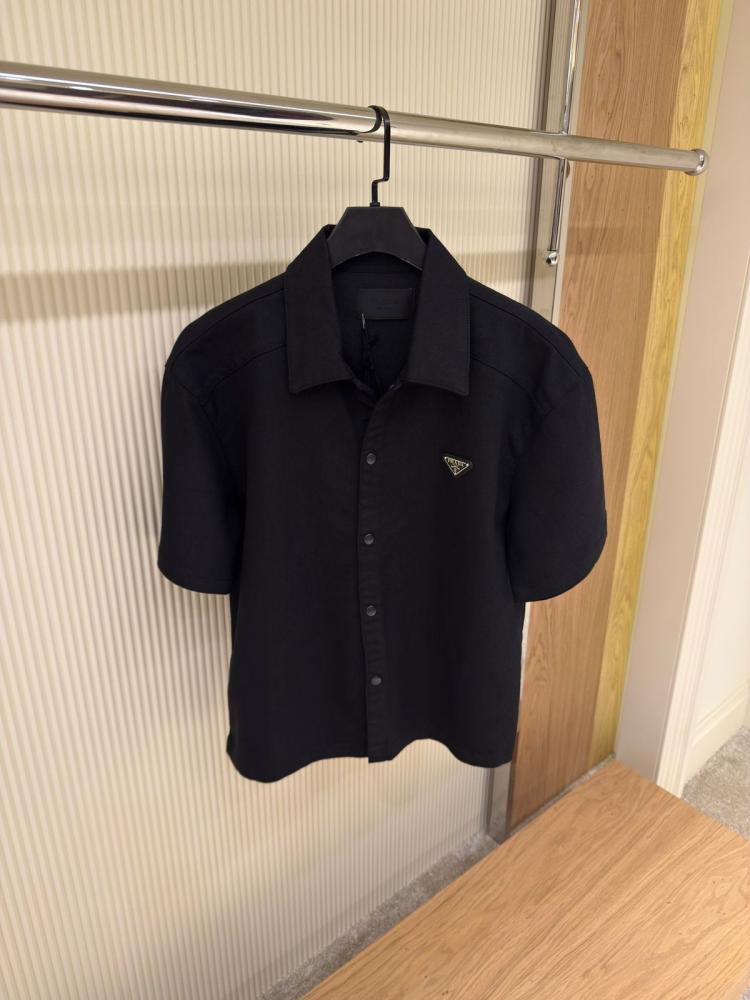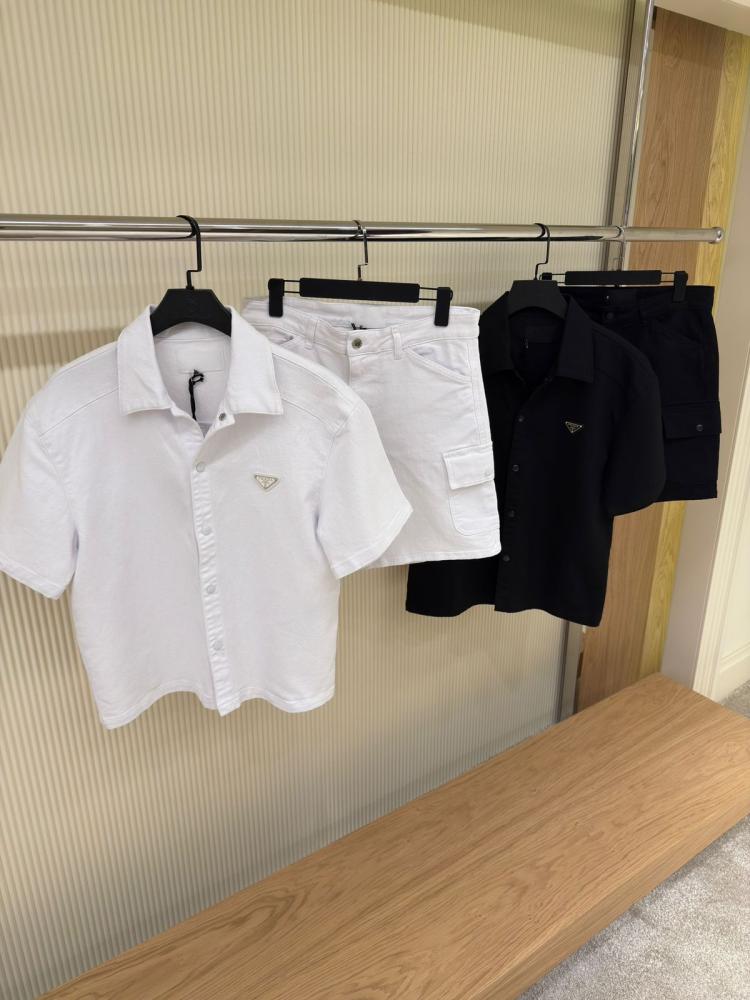سيت شورت وقميص رجالي من برادا باللون الأسود يجمع بين الأناقة والراحة في تصميم واحد.